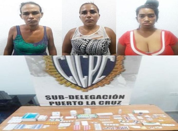 El Nacional informó el lunes que las ciudadanas Lourdes Josefina Villena, de 38 años de edad; Naikelin Brigitte Solórzano Villarroel, de 23, y Dayana Carolina Ríos Pinto, de 28, fueron capturadas en el mercado municipal de Puerto La Cruz, sector Casco Central, municipio Juan Antonio Sotillo, del estado Anzoátegui, por venta ilegal de medicinas.